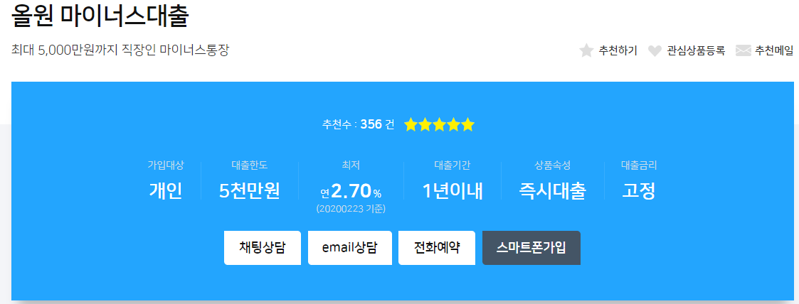 재직 1년 이상 근롲, 연소득 3000만원이상, 동일사업장 국민겅강보험 가입이력 1년이상 분들이 이용할 수 있는 마이너스 대출입니다 최소 100만원부터 최대 5천만원 이내로 이용할수 있으며 최대 5년까지 연장 가능합니다.