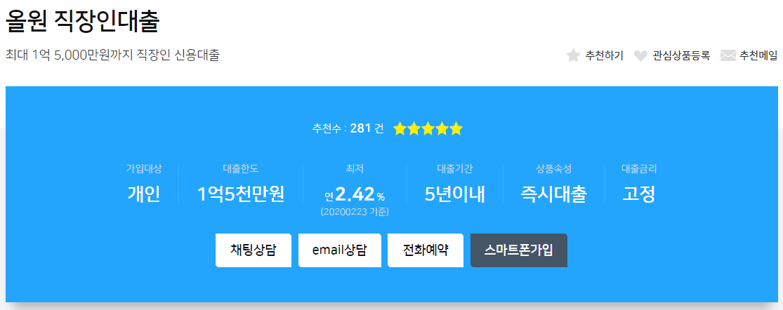 직장인대출 경우 더 큰 한도로 이용할 수 있습니다.